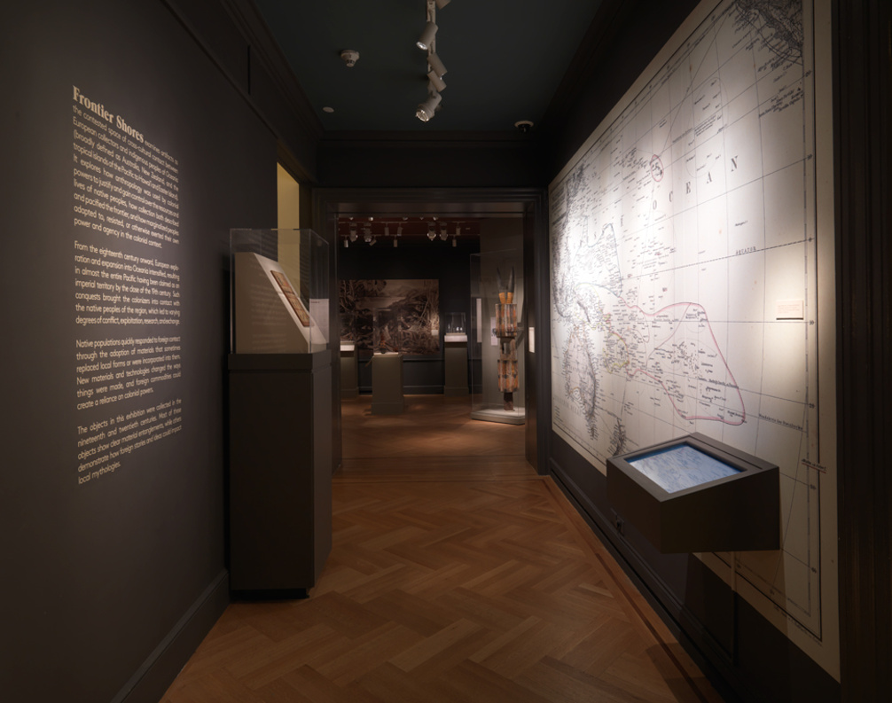 From the BGC website: Frontier Shores: Collection, Entanglement and the Manufacture of Identity in Oceania examined artifacts as the contested space of cross-cultural contact between European collectors and the native peoples of the region. In the nineteenth and early twentieth centuries, the growing discipline of anthropology was both a powerful tool of colonial control and an ideological justification for it. As European empires and their commercial reach expanded, different populations became intertwined in relationships of exchange and power. Focusing on Oceania—the vast region encompassing Australia, New Zealand, New Guinea, and the tropical Pacific Islands—Frontier Shores explored how anthropology was used by colonial powers to justify and gain control over the resources and lives of the various native peoples, how collection both described and pacified the frontier, and how marginalized peoples adapted to, resisted, or otherwise exerted their own power and agency in the colonial context.